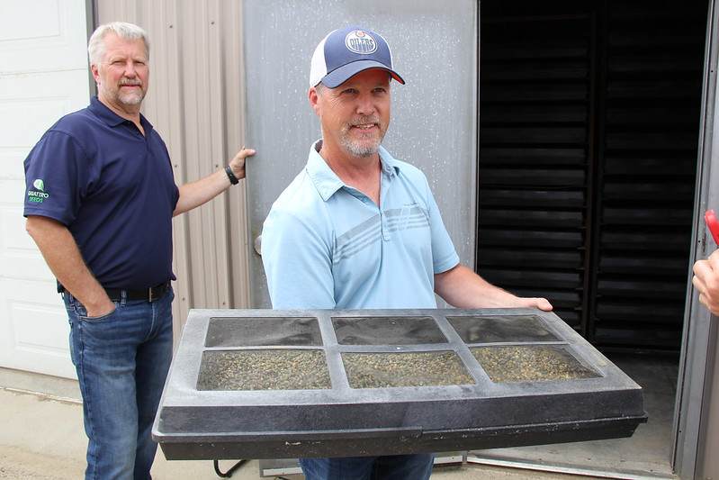 This stop also included a tour of one of Quattro partner organizations. Forty Mile Pollinators raise leaf-cutter bees for Alberta farmers and from hatching to hibernation, they are with the bees every step of the way. With many crops in the field getting ready to bloom, Forty Mile was ready to deliver trays of bees to local farmers. Their simplified design of their bee tents allow for easy transportation and installation in the fields.