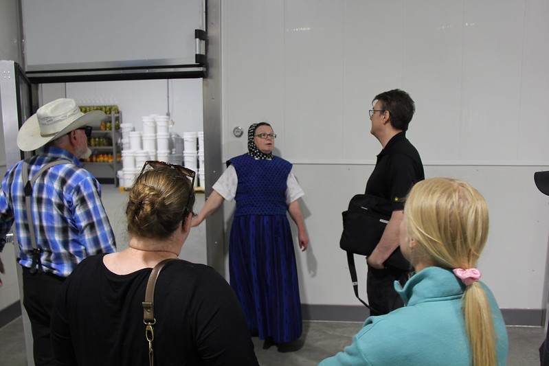 Marlene Hursh organized our next stop at the Wheatland Hutterite Colony where we toured their barns and gardens. Judy and John Hofer gave an excellent tour of their home colony and explained how the colony works together to produce all the food they sell and store for colony use.